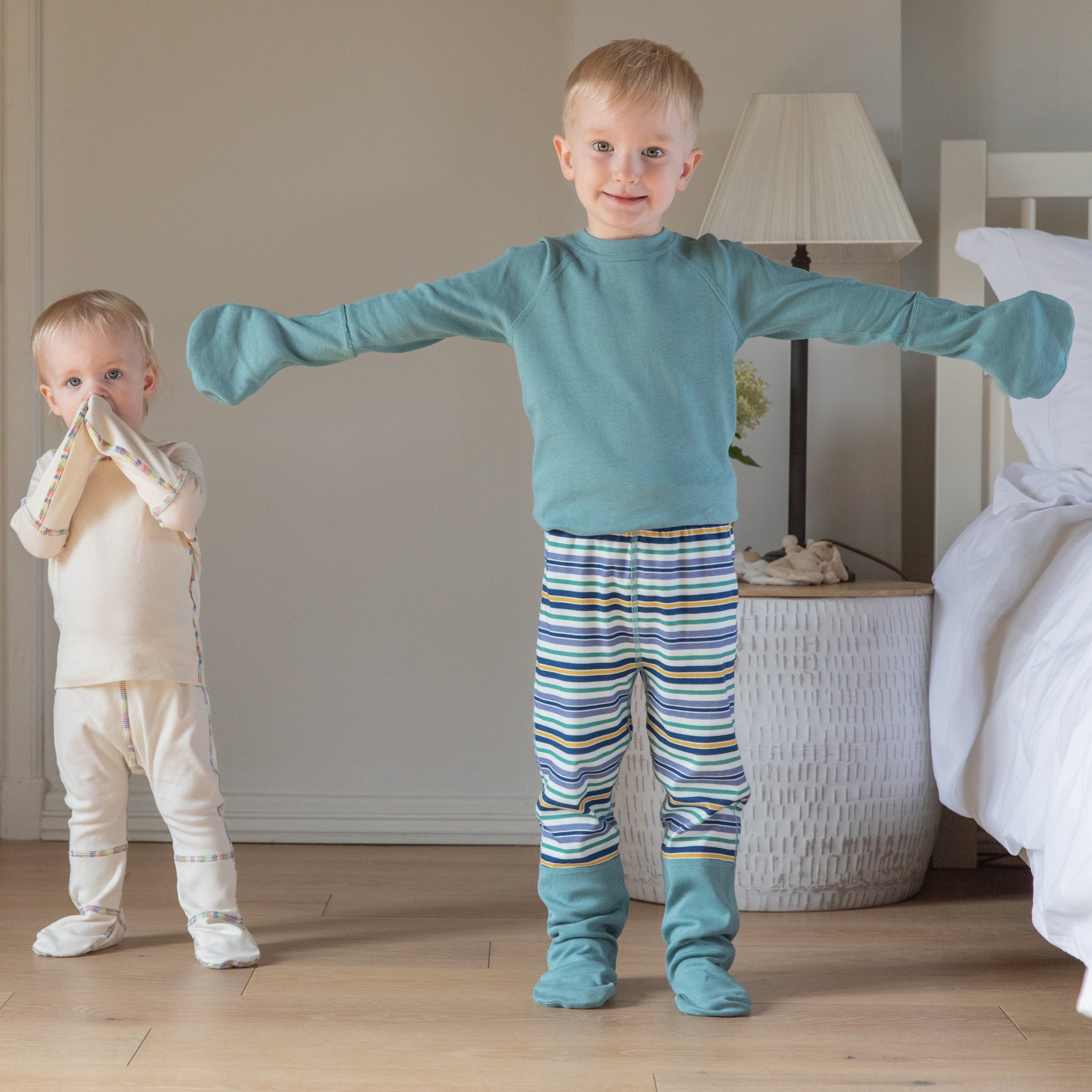 Help them itch less and sleep better with our specially designed 100% Organic Cotton PJ bottoms with enclosed feet to protect itchy ankles.